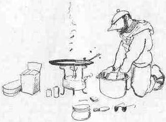 костра, на котором готовился какой-то грандиозный и загадочный обед в честь