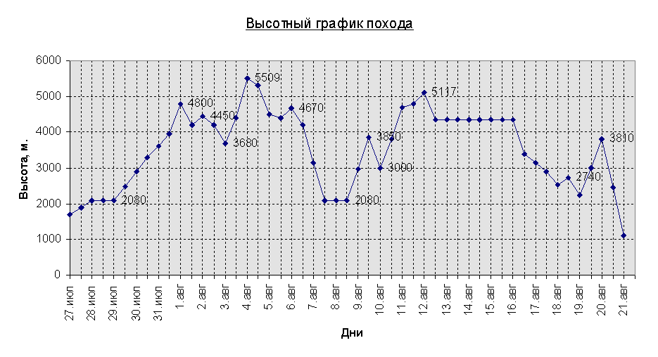 На перевале встречаем пастухов, которые рассказали, что несколько лет назад тропа по берегу р. Джиптык обвалилась, и теперь это ущелье непроходимо. Эти сведения подтверждались рассказами пастухов из долины р. Тамынген, а позже мы встретили группу ижевских туристов, которые в прошлом году пытались пройти по р. Джиптык, но вынуждены были вернуться.