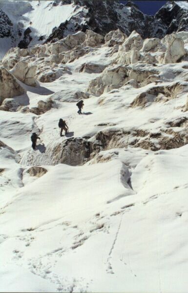 вчерашними достижениями. Все наши следы в ледопаде превосходно сохранились.