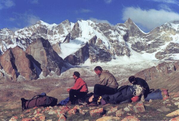 на моренах. Дует южный ветер. Выходим дальше в 16.00. Пройдя по полностью