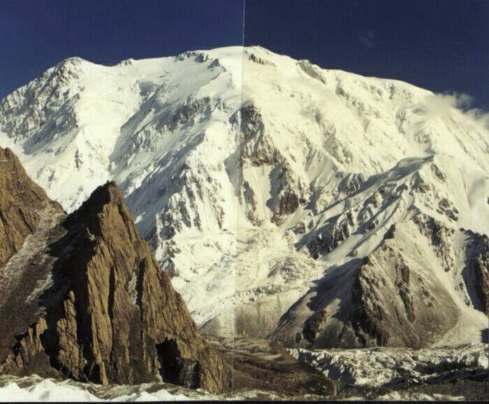 Яманджар снизу при виде с ледника Коксель, на деле находится ниже самого