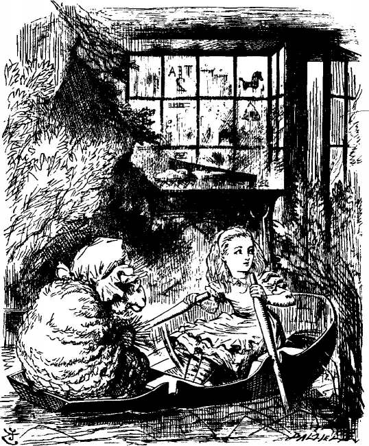 Овца на деле просит Алису отводить весла назад по воздуху, а не