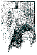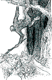 to the ground on either side, walked an old female of the Tree