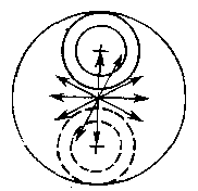 Ну, а если наш объектив идеален с точки зрения аберраций? Тогда предельное увеличение телескопа равно диаметру объектива в миллиметрах, умноженному на 1,4. Объектив диаметром 40 мм может датъ увеличение около 60 раз, но не больше, так как при дальнейшем повышение увеличения телескопа становится заметной волновая природа света. В результате даже идеальный объектив покажет вместо звезды кружок, окруженный одним или двумя радужными колечками (рис. 7).