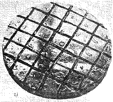 Нужно следить за тем, чтобы резец был хорошо заточенным, а образующийся нагар нужно убирать сразу, как только резец отведен за край заготовки в исходное положенное. После окончания протачивания ступенек на краю шлифовальника надо сделать фаски. Ширина ступенек монотонно уменьшается к краям (рис. 95). Если в этой, легко обнаруживаемой закономерности окажутся один-два сбоя, то это не очень страшно, так как во время шлифовки образуется единая сферическая поверхность и одна из несошлифовавшихся канавок существенно не повлияет на форму зеркала. Обдирать заготовку зеркала можно сразу на ступенчатом шлифовальнике. Но, для того чтобы не "срезать" вершину шлифовальника, шлифовку надо вести как через центр, так и по хорде, следя из тем, чтобы ступеньки шлифовальника сошлифовывались одинаково по всей его поверхности. Однако можно начать обдирку зеркала и с помощью трубчатого шлифовальника, а уже потом начать шлифовку на шлифовальнике.