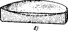 Во время машинной обработки надо внимательнее следить за влажностью шлифовальника и зеркала. На машине они высыхают быстрее из-за более интенсивной работы. Высохший же абразив может стать причиной царапин, и более того, если зеркало присосется к шлифовальнику, поводок может выскочить из гнезда и повредить зеркало. Чтобы предотвратить последнюю неприятность, Р. Кокс предложил делать шайбу, наклеиваемую на зеркало, придавая ей форму, показанную