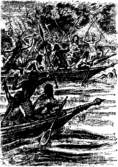 плывем, я смог наконец вздохнуть свободно - погоня осталась позади.