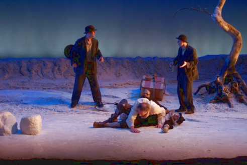 Estragon draws Vladimir towards the tree. They stand motionless before