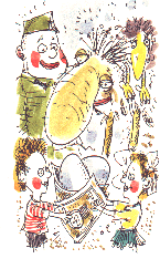 Генерал. Что я слышу? Приветственные крики! Наверное, меня опять представили к... Пойду за наградой! (Уходит.)
