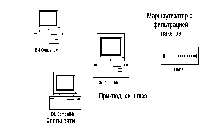 Чтобы защититься от ряд уязвимых мест, связанных с маршрутизаторами с фильтрацией пакетов, в брандмауэрах нужно использовать прикладные программы для перенаправления и фильтрации соединений с такими службами, как TELNET и FTP. Такое приложение называется прокси-службой, а хост, на котором работает прокси-служба - прикладным шлюзом. Прикладные шлюзы и маршрутизаторы с фильтрацией пакетов могут быть объединены для достижения более высокой безопасности и гибкости, чем была бы достигнута, если бы они использовались отдельно.