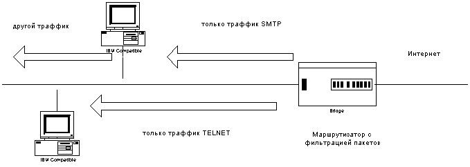 Рисунок 2.3 Пример фильтрации пакетов для TELNET и SMTP