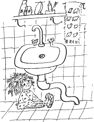 Девочка вошла в ванную. Кузька прыгал под раковиной умывальника.