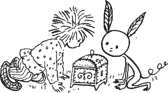 Корыто само -- скок на берег, на зеленую травку. Кузька с сундучком в