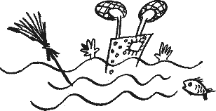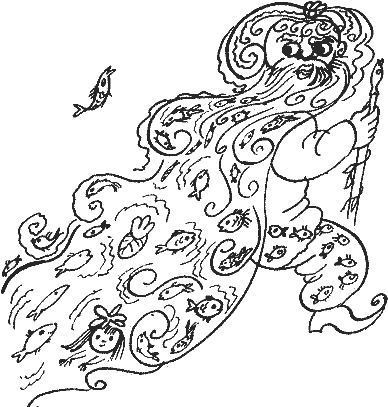 Тут корыто перевернулось. Яга упала в воду. А из реки вынырнул Водяной: