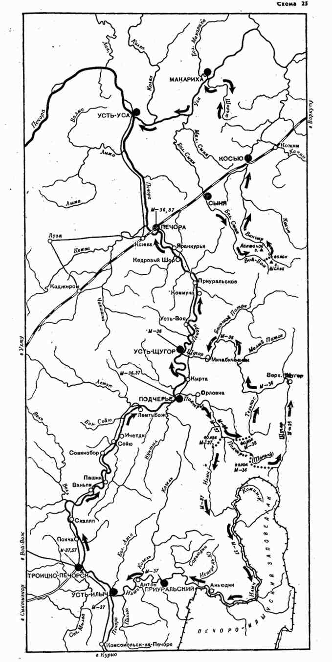 железнодорожной линии Котлас -- Воркута до деревни Подчерье пароходом