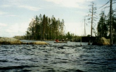 постройке плотины на Ондозере, поэтому по берегам болото и мертвый лес, стоянок