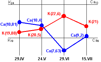 Произведенные в это время определения "K" и "Ca" показали следующее: