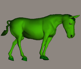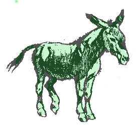 засушливой погоды. Зеленая краска, намокая, стекает с боков осла грязными